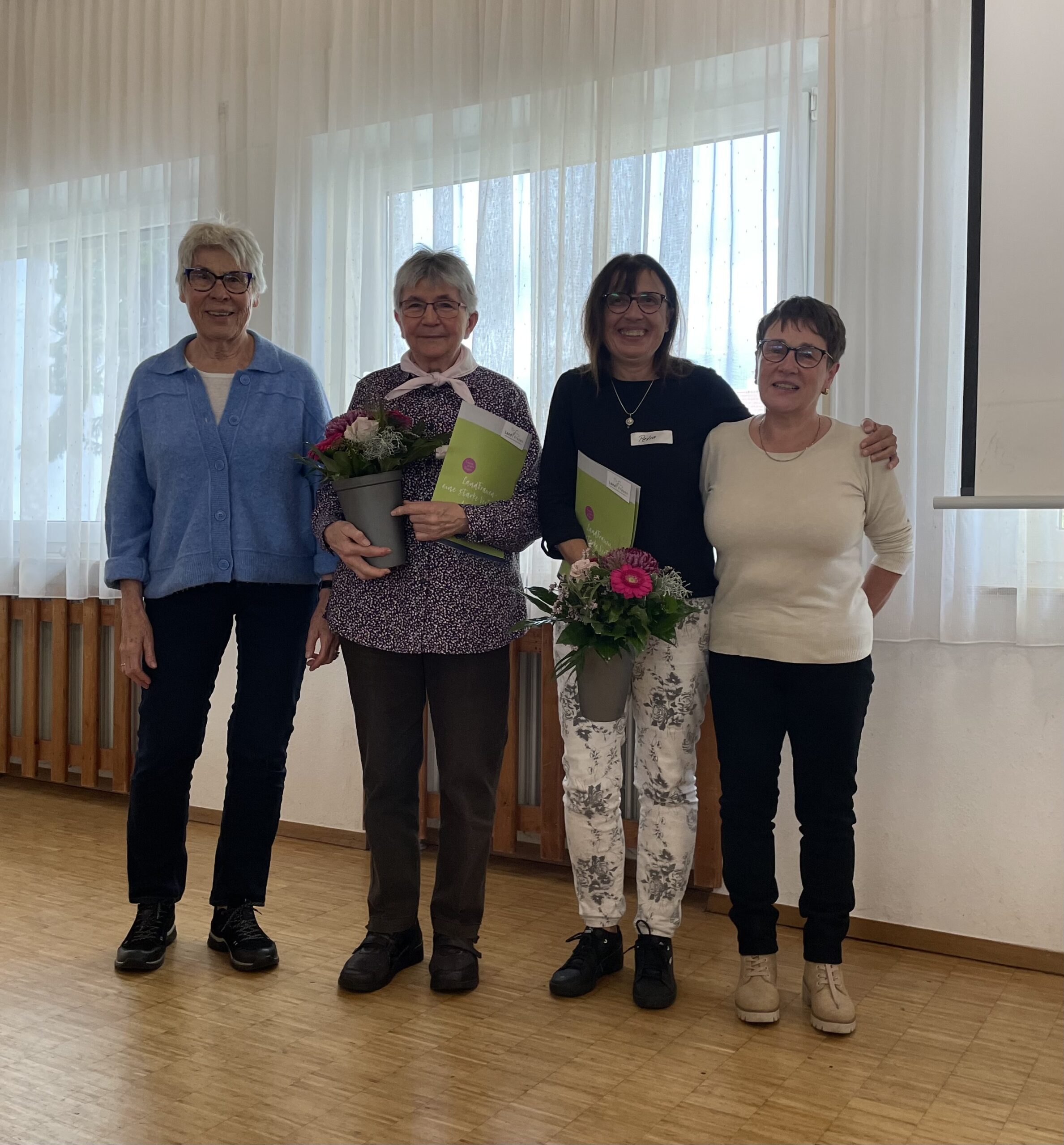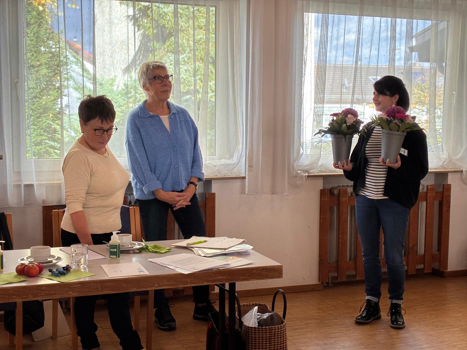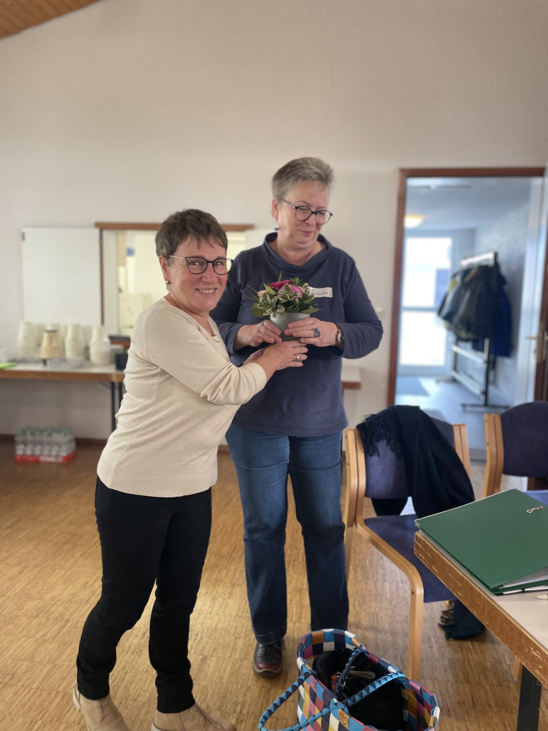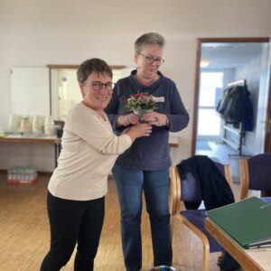 Zum Schluss wurden mit einer Ehrenurkunde und einem Blumenstrauß Hildegart Hauer, Gärtringen und Petra Klump, Kuppingen für 10 Jahre Ortsvorsitz in ihren Vereinen geehrt.
