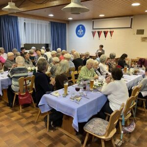 Wie immer, so auch in diesem Jahr, wurde in Mötzingen zum Jahresabschluss am 10.12.2025 zur Adventsfeier ins Sportheim nach Mötzingen eingeladen. Die Vorstandschaft der Mötzinger LandFrauen hat die Feier, passend zu Weihnachten, unter das Thema Engel gestellt. Unsere Vorsitzende Heidi Morlok, freute sich über den gutem Besuch und begrüßte die zahlreichen Gäste mit einem Engelsgedicht. Nach einem leckeren Essen haben die beiden Mitglieder, Anja Harr und Sigrid Radloff, ein Anspiel von einer Engelsbegegnung vorgetragen. Über Engel, denen wir täglich begegnen, als Beschützer und Begleiter. Eine schöne Tradition ist es, Mitglieder mit runden Geburtstagen im fast abgelaufenen Jahr bei der Adventsfeier zu ehren und zu beglückwünschen. Christl Hurlebaus hatte dieses Jahr ihren 90.Geburtstag, konnte aber leider aus gesundheitlichen Gründen den Glückwunsch unserer Vorsitzenden nicht direkt entgegennehmen. Zum 80. Geburtstag gingen herzliche Glückwünsche an Anneliese Bertsch und Anneliese Krüger. Allen wünschte sie alles Liebe und Gute, vor allem Gesundheit und weiterhin viel Freude und Spaß bei und mit den Mötzinger LandFrauen. Unsere Vorsitzende verabschiedete die Gäste mit einem Dankeschön an alle, die in irgendeiner Weise zum guten Gelingen der Aktivitäten im vergangenen Jahr beigetragen haben.