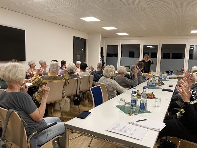Birgit Pezina-Heumesser hat am 05. November 2025 über das Thema Hände bei den Mötzinger LandFrauen im Bürgersaal referiert. Keine anderen Körperteile werden so oft benötig wie sie. Was Hände alles leisten. Sie sind von früh bis spät im Einsatz und für jedem Handgriff notwendig. Damit uns die Beweglichkeit von Fingern und Hand möglichst lange erhalten bleibt ist eine entsprechende Pflege notwendig. Deshalb hat Frau Pezina-Heumesser mit uns ein paar Fingergymnastik- und Dehnübungen eingeübt. Diese können während der Arbeit und zwischendurch gemacht werden. Auch eine Handmassage mit warmem Sesamöl entspannt und tut gut. Aus unserem Garten können viele Kräuter als Tee oder Salbe zur Vorbeugung und Linderung von Bewegungsschmerzen beitragen.